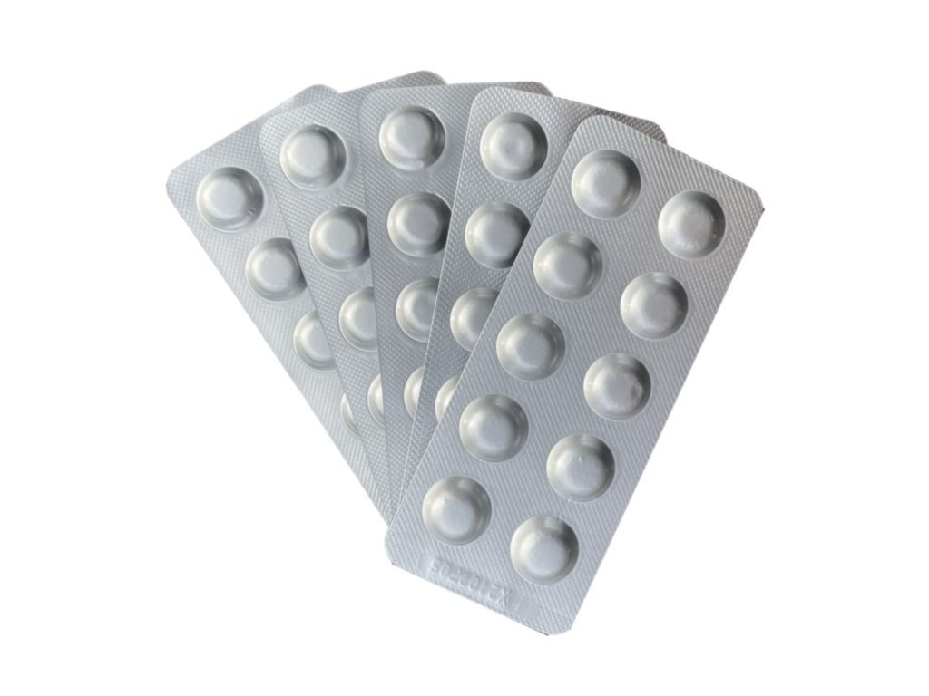 Pomocné testovací tablety pro měření obsahu peroxidu vodíku ve vodě.