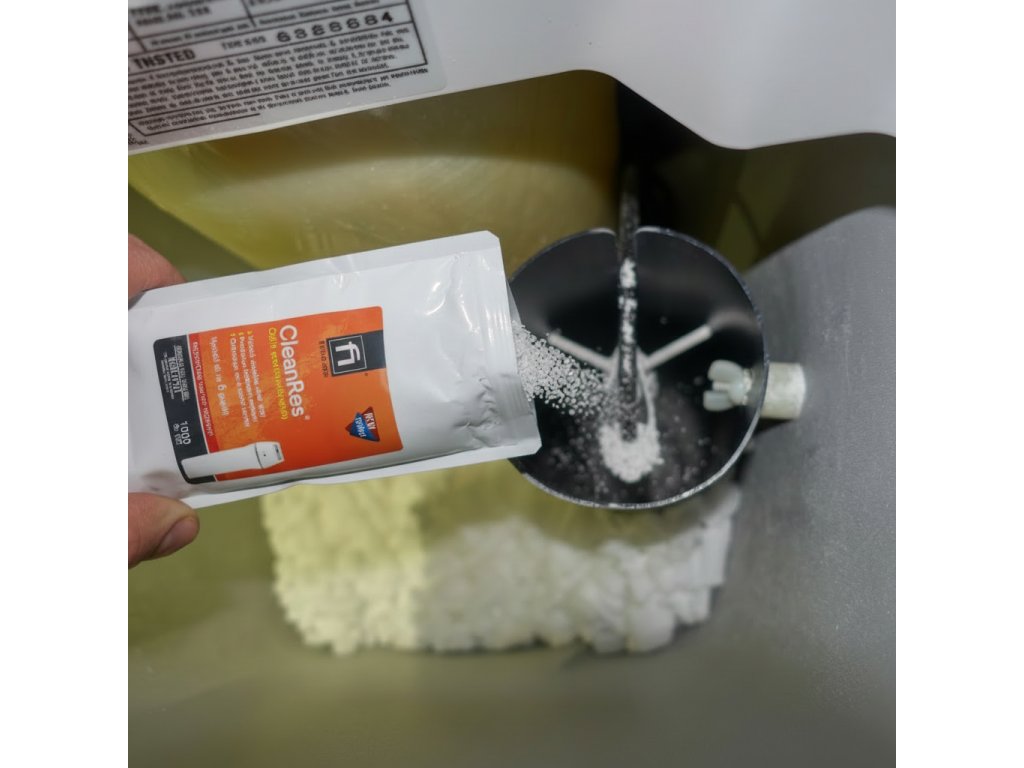 CleanRes je speciálně vyvinutý čistič pro domácí i komerční změkčovače vody. Odstraňuje vápník, hořčík, železo, mangan, organické sloučeniny a nahromaděný biofilm ze zásobníku pryskyřice vašeho změkčovače vody pomocí jedinečné ekologicky šetrné receptury. Pravidelné používání zajišťuje účinnou údržbu změkčovače vody, která obnovuje jeho maximální účinnost, zlepšuje chuť vody a prodlužuje životnost změkčovače.