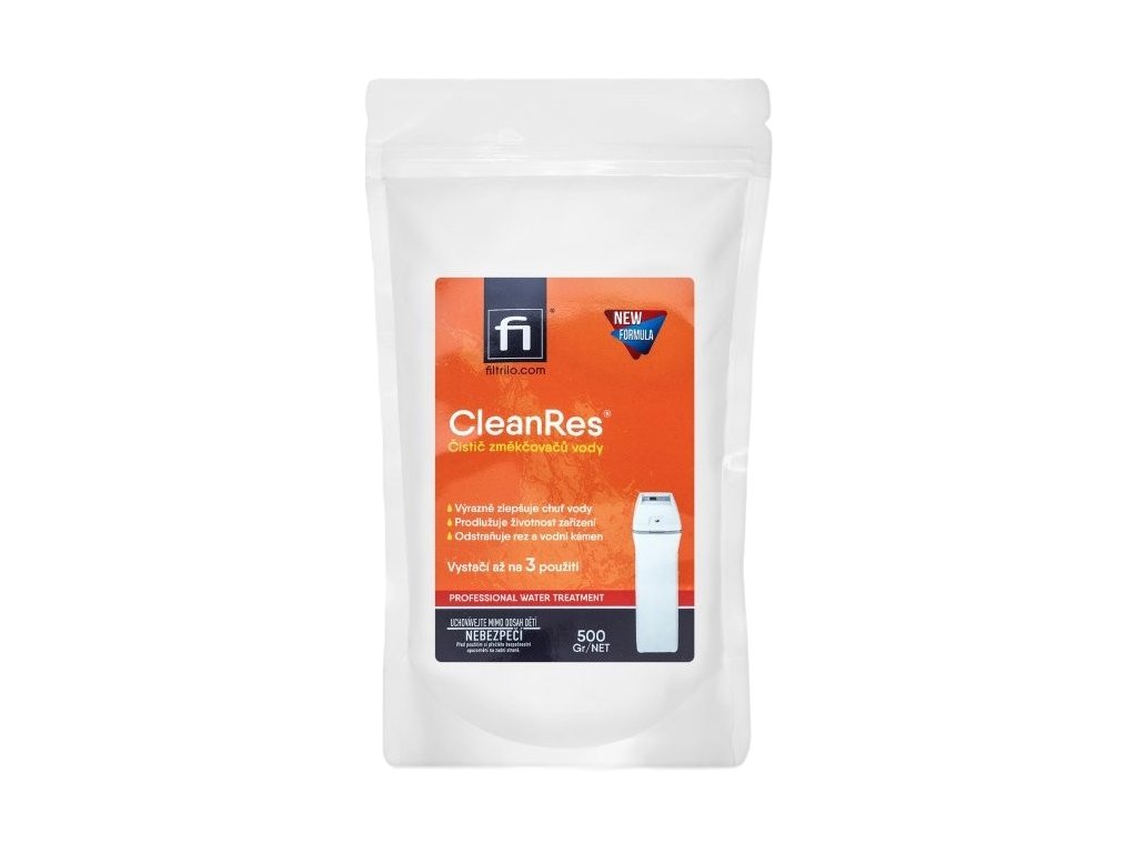 CleanRes je speciálně vyvinutý čistič pro domácí a komerční změkčovače vody. Odstraňuje vápník, hořčík, železo, mangan, organické sloučeniny a nahromaděný biofilm ze zásobníku pryskyřice vašeho změkčovače vody pomocí jedinečné ekologicky šetrné receptury. Pravidelné používání zajišťuje účinnou údržbu změkčovače vody, která obnovuje jeho maximální účinnost, zlepšuje chuť vody a prodlužuje životnost změkčovače.